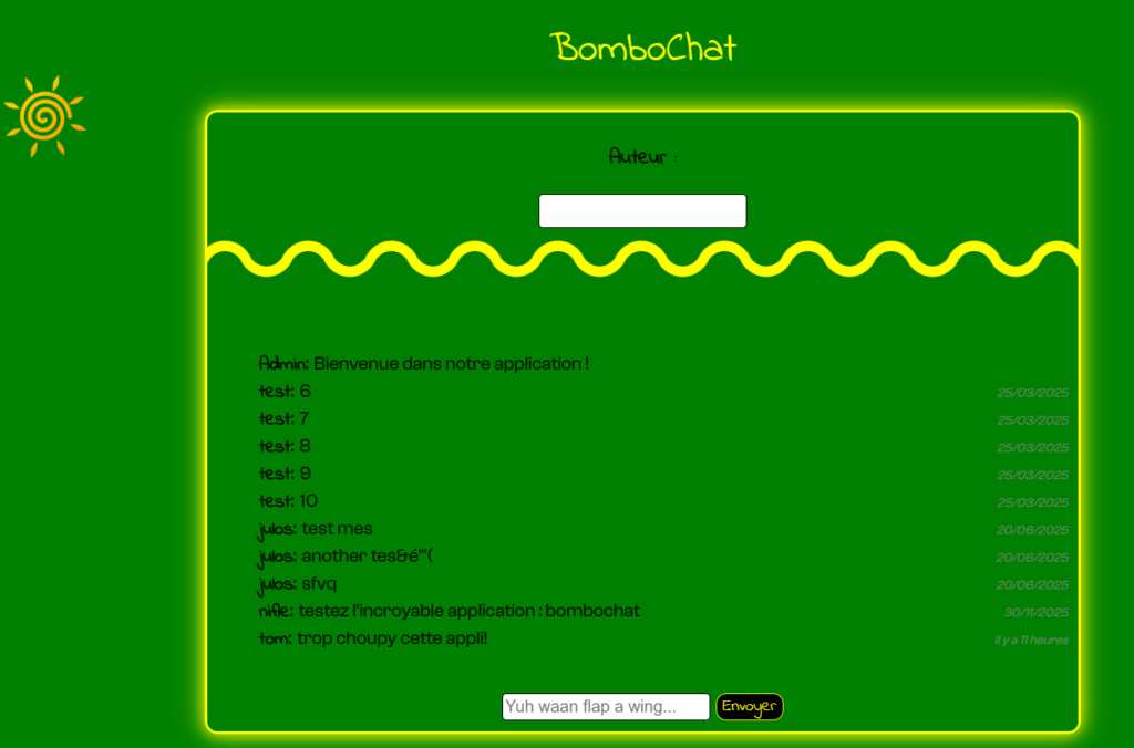 Voici Bombochat, un outil de communication en ligne. Vous pouvez y aller et rentrer un pseudo afin de laisser un message.